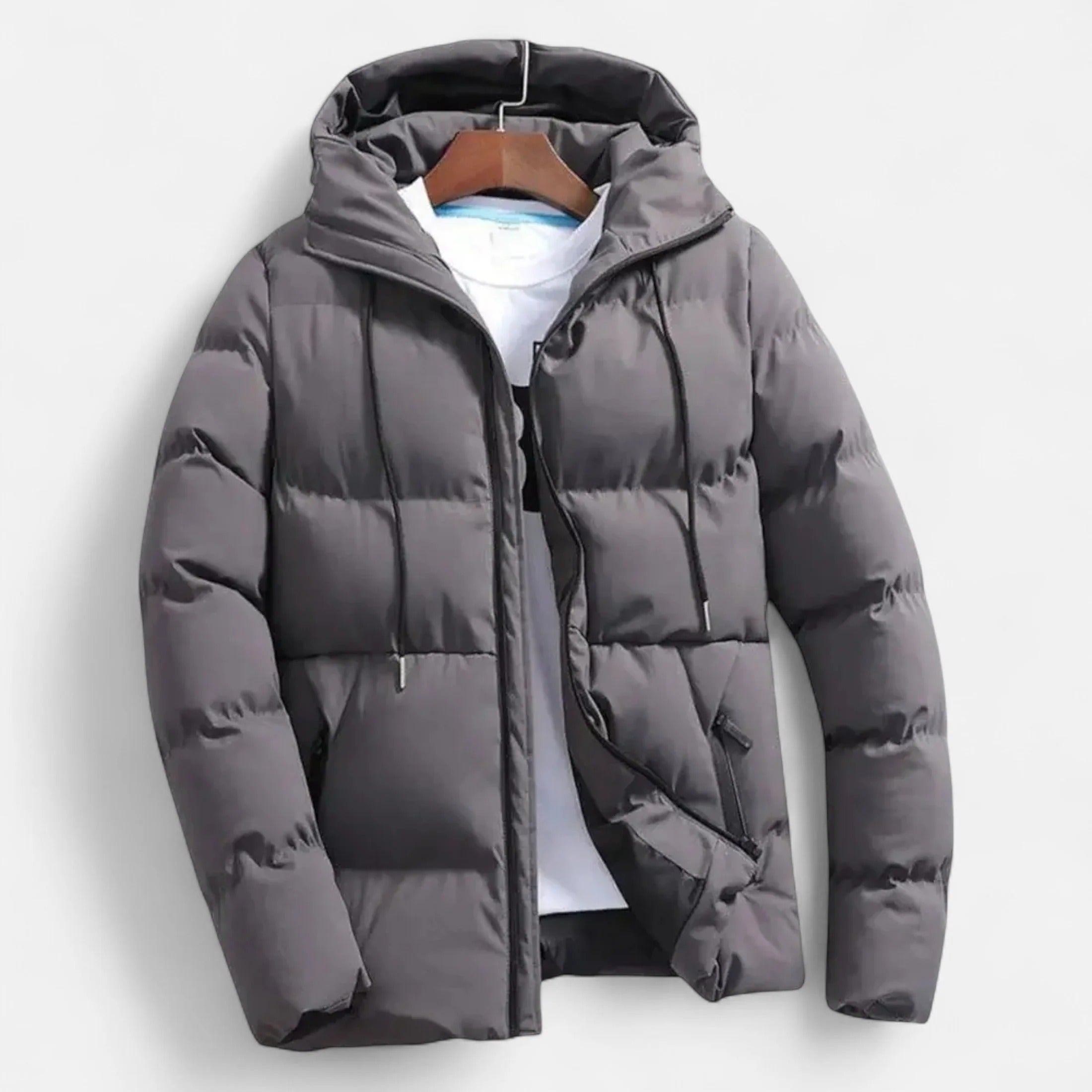 Hooded Puffer Jacket with Drawstring for Men