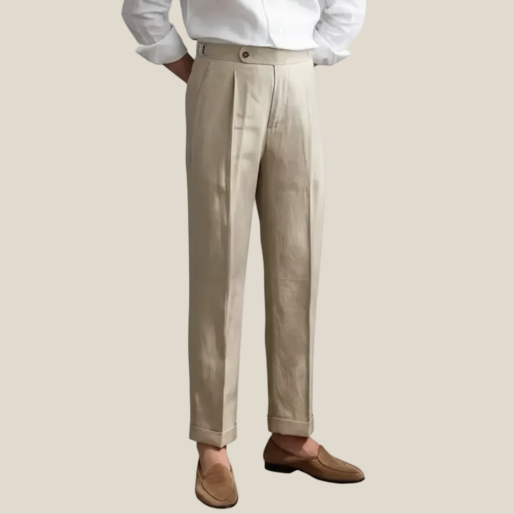 Pleated Linen Trousers with Cuffed Hem for Men